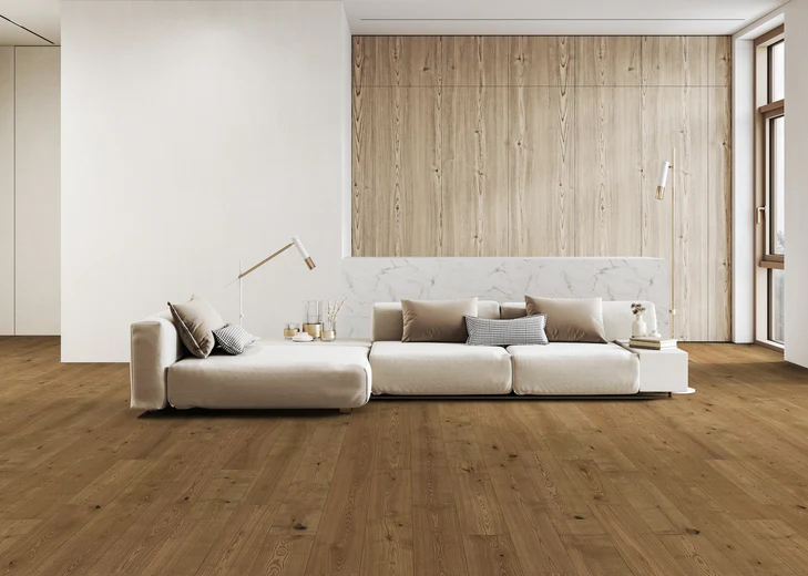 Bring natural warmth and contemporary appeal into your home with Fabrica’s Fortress Collection engineered hardwood flooring. Crafted from Rustic Ash, this collection highlights authentic wood character and grain movement, balanced with modern color tones that coordinate beautifully with a wide range of décor styles.