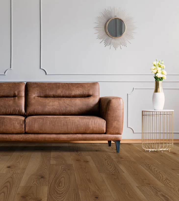 Relic features 9.5” wide planks with 82.75” random lengths (RL) for a clean, expansive look that enhances visual flow in larger rooms and open-concept spaces. A wire-brushed finish adds texture and depth, while the 5/8” thickness and 4mm sawn face deliver a premium feel and an authentic hardwood appearance.