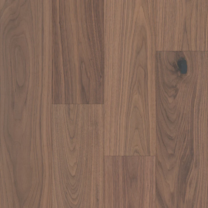 Versailles Collection | Reverie Walnut WA701-F1679 – Engineered hardwood flooring features a 3mm American Walnut sliced face with 7.44” x 74.8” planks and a 9/16” profile. Built with a durable multi-wood core for strength and stability, it brings classic walnut beauty to any interior.