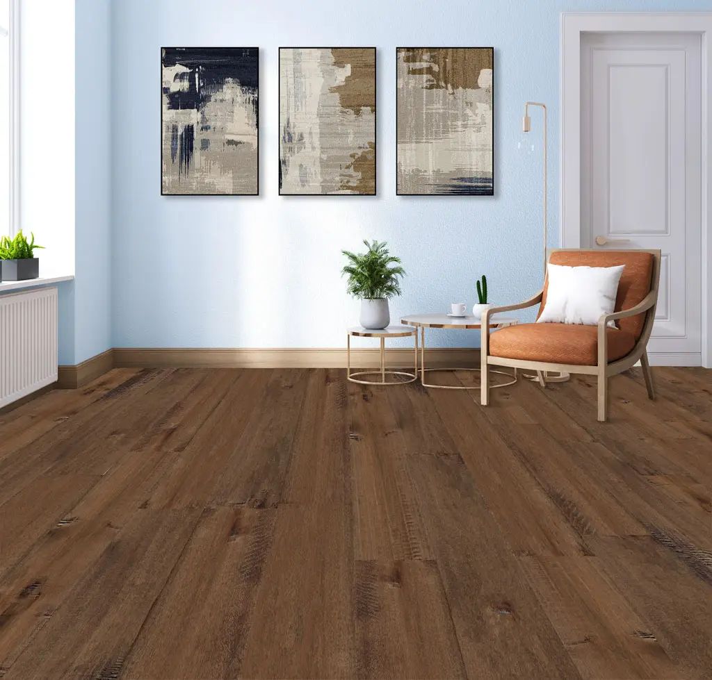 Step into the rustic allure of the Bison Trail Collection by Fuzion Flooring. Designed for homeowners who want authentic character without sacrificing performance, Bison Trail pairs bold visuals with dependable construction. Each 7-1/2” wide plank is built on an engineered multi-layer plywood core for added stability, and finished for everyday durability.