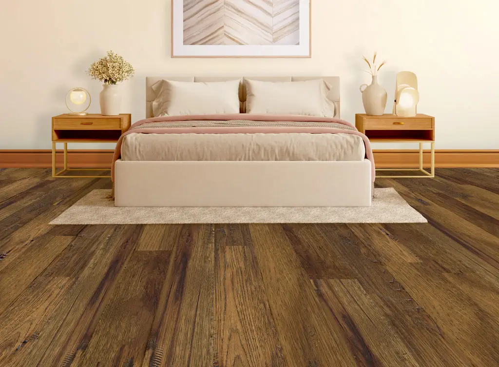 Step into the rustic allure of the Bison Trail Collection by Fuzion Flooring. Designed for homeowners who want authentic character without sacrificing performance, Bison Trail pairs bold visuals with dependable construction. Each 7-1/2” wide plank is built on an engineered multi-layer plywood core for added stability, and finished for everyday durability.