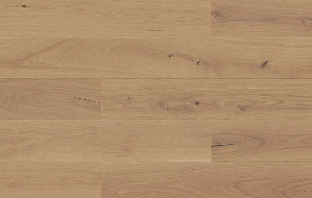 Briarwood Collection | Somerset Downs — White Oak engineered hardwood flooring featuring wire-brushed surfaces and a UV cured polyurethane finish with aluminum oxide for lasting durability. With stunning 8″ wide planks and a 3.2mm sliced face layer, Somerset Downs brings natural warmth and elegance to any space.
