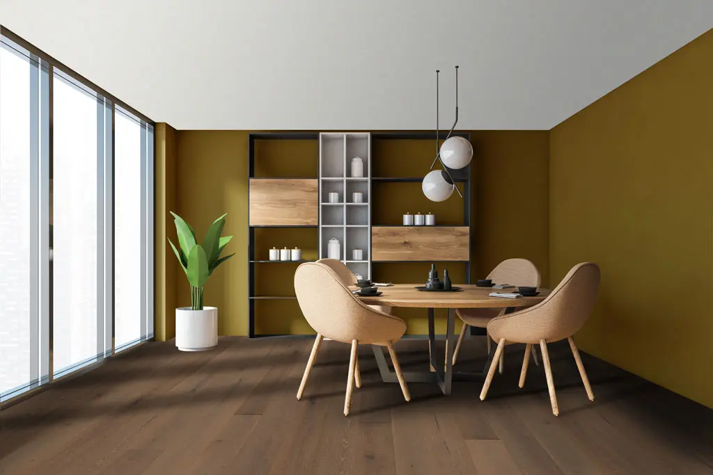 Bring the look of the outdoors into your space with Fuzion Flooring’s Canyon Creek Collection. This engineered hardwood features luxurious wide planks and an on-trend color palette, including fumed/smoked visuals that add depth and richness. Each board highlights the true beauty and natural variation of hardwood, while the strong wire brushing delivers a tactile, authentic surface that feels inspired by the canyon landscape.