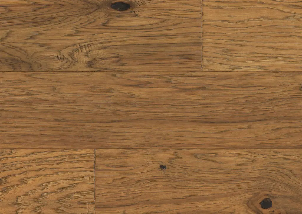 Grasslands Collection | Stirrup GLHIC166STR05 – All-Hickory engineered hardwood with 6-1/2” wide planks, a 3/8” profile, low-luster sheen, and strong natural variation (Level 4). Built on a multi-layer plywood core with micro-beveled edges and a durable UV-cured polyurethane finish with aluminum oxide. Select colors vary by texture (wirebrushed or handscraped/wirebrushed/chattered) and length (random up to 71” or 75”).
