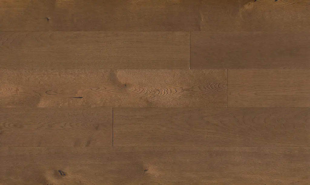 Heritage Hills Collection | Bourbon HHOAK190BB – Pairs soft fumed color tones with a light wirebrushed texture for classic, versatile style. Engineered Oak planks are 7-1/2” wide with a 3mm sawn face, 9/16” thickness, micro-beveled edges, low-luster sheen, and strong variation (Level 4). Finish varies by color: UV-cured polyurethane + aluminum oxide, with select smoked options.