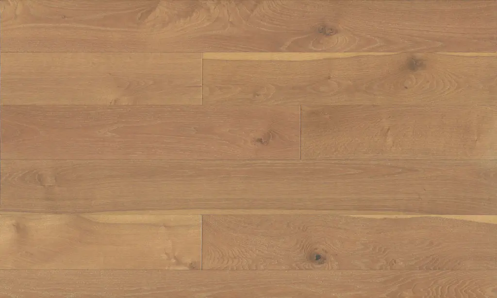 Summit Ridge Collection | Jasper SROAK165JAS – Fuzion Flooring Summit Ridge Collection creates a calm, modern foundation with 6-1/2” wide engineered hardwood planks. Available in Hickory, Oak, and Acacia with a sliced wood face, multi-layer plywood core, 1/2” thickness, beveled edges, low-luster sheen, Variation Level 3 (Moderate), and UV-cured polyurethane finish with aluminum oxide. Length and texture vary by species.